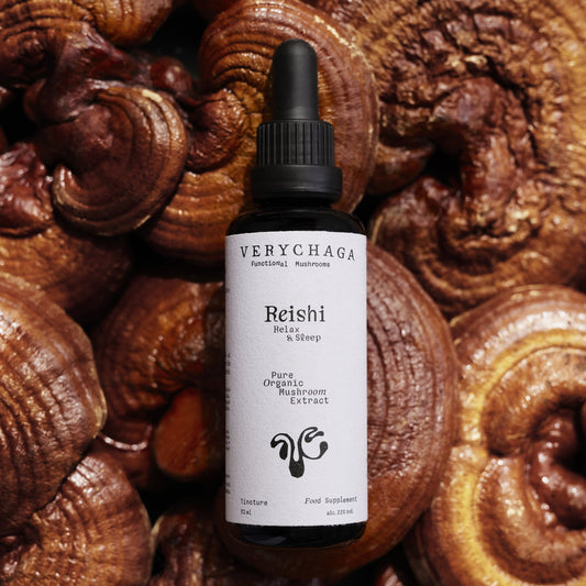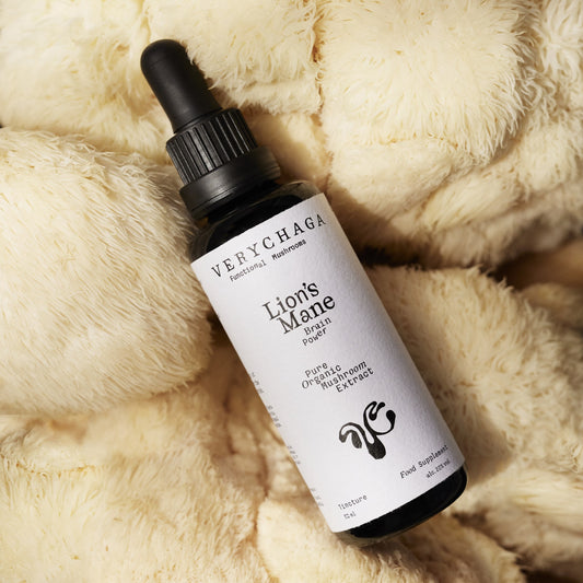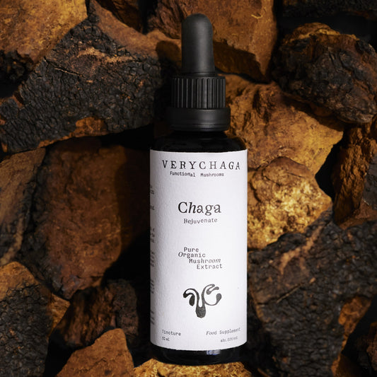 Nuestras cepas de hongos están minuciosamente seleccionadas para cultivar los Extractos de Hongos VeryChaga, que producen la mayor cantidad de los compuestosde interés. El hongo Chaga se inocula en un bosque de abedules silvestres y el Reishi y la Melena de león, en el sustrato de serrín de abedul más idóneo, todos plantados y procedentes de bosques finlandeses limpios con certificación FSC. Además, solo utilizamos cuerpos fructíferos para la Melena de león y el Reishi y esclerocios para el Chaga, y no utilizamos micelio, ya que el extracto resultante podría ser más almidonado. Sin cereales ni rellenos. SIN OMG. Con certificación ecológica.